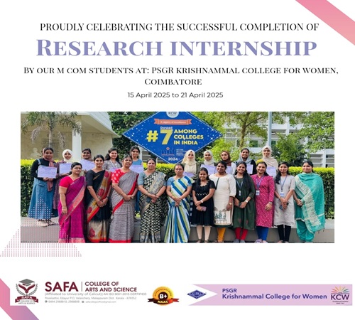 Our first year M.Com students are attending seven days Research Internship program at PSGR krishnammal college for women coimbatore