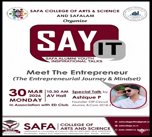 Welcome to Safa College of Arts and Science, where excellence meets innovation in education. The college is one among the leading institutions in the self-financing sector, affiliated with the University of Calicut and run by Orphans Educational Charitable Trust Edayur. Established with a vision to impart holistic education by honorable Sir V. P Kunhimoideenkutty, it stands as a beacon of academic excellence, fostering a vibrant community of learners driven by curiosity and creativity.